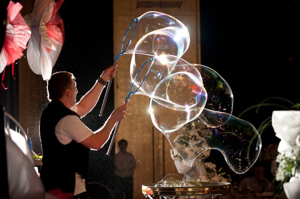 Шоу мыльных пузырей всегда порадует всех ярким и веселым спецэффектом. Волнует один вопрос - не оставит ли шоу пятен на одежде гостей? Не оставит, будьте уверены. Мыльные пузыри бывают разных размеров, все зависит от сложности техники исполнения. Если позволит бюджет можно пригласить артистов профессионалов по запуску гигантских мыльных пузырей разных форм, которые произведут на всех невероятные впечатления.